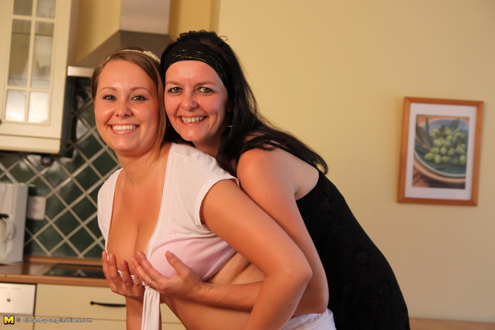 Naughty babe lezzin up the older woman next door